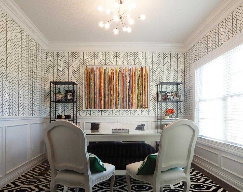 Спальня с рабочим кабинетом в геометрическом дизайне
