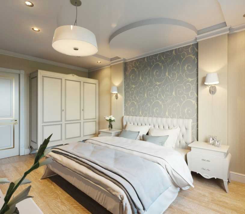 В больших помещениях можно удобно зонировать пространство с помощью особенностей освещения и потолочного покрытия. Кроме того, в современных домах, особенно частного сектора, спальня часто имеет в своем распоряжении небольшую ванную комнату, это очень удобно и практично.