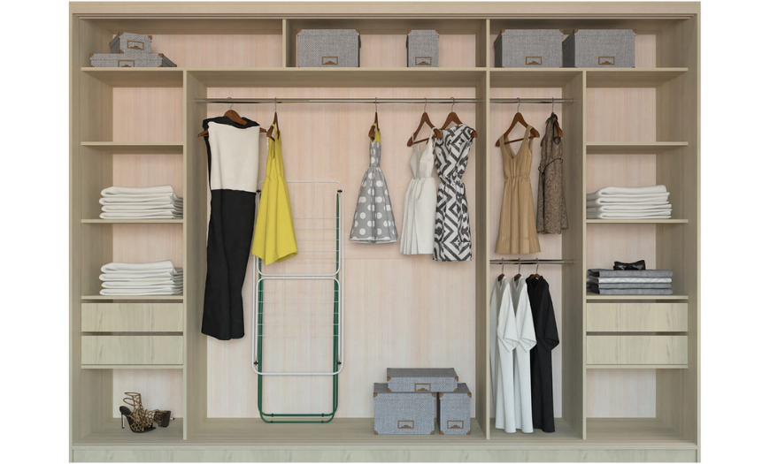 Обычно в таких моделях есть узкие и широкие отделы, первые подходят для полок, а вторые – для перекладин, гладильной доски, пылесоса.