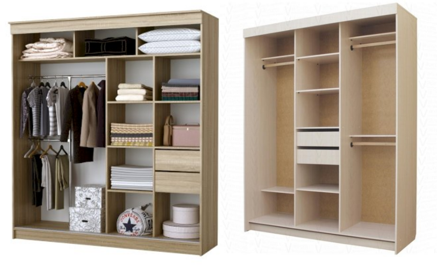 Шкаф-купе популярен благодаря вместительности и возможности комбинировать внутренние модули. Распределение начинки зависит от назначения/расположения мебели. Перед покупкой нужно знать, что будет храниться на полках и грамотно распланировать внутреннее содержание шкафа.