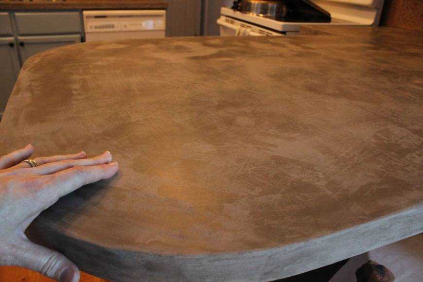 Также стоит позаботиться и о дереве: оно должно выдержать вес бетона, а также не расслаиваться. Обработать поверхность лаком или герметиком. Покрывать столешницу нужно для защиты ее от влаги и грязи. Подумать о дизайне. Все зависит от фантазии и личных предпочтений: искусственный мрамор, жидкое стекло, добавление цветных пигментов.