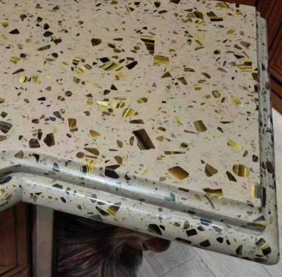 Часто изготавливают каменные столешницы своими руками из бетона, применяя различные наполнители. Плита получается тяжелой и очень надежной.