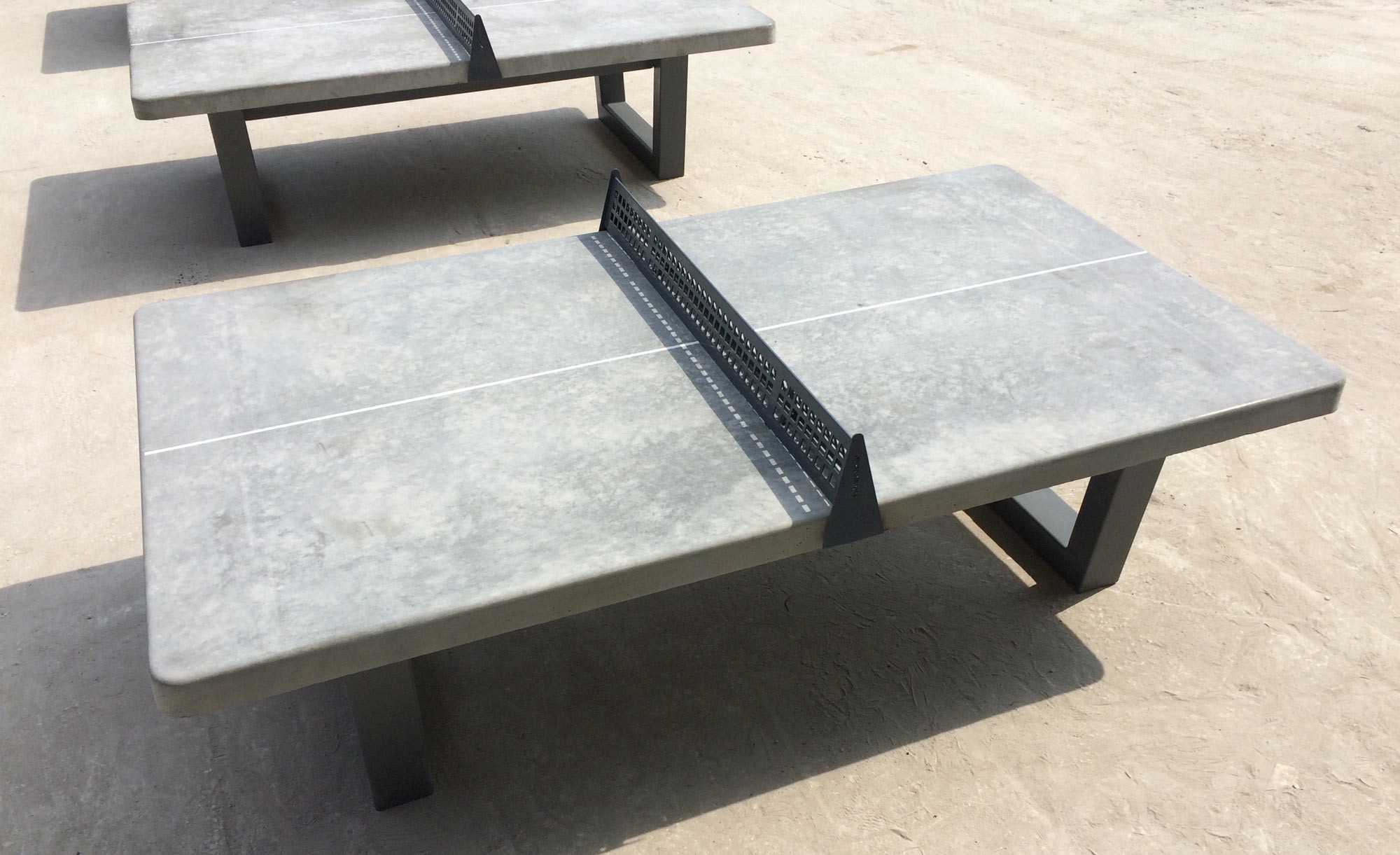 - Бетон – материал, не боящийся воды, способный служить во влажных условиях очень долгое время, а при обработке гидроизоляционными пропитками так и вовсе сносу знать не будет. Бетонный теннисный стол можно смело оставлять под открытым небом хоть в дождь, хоть в снег.