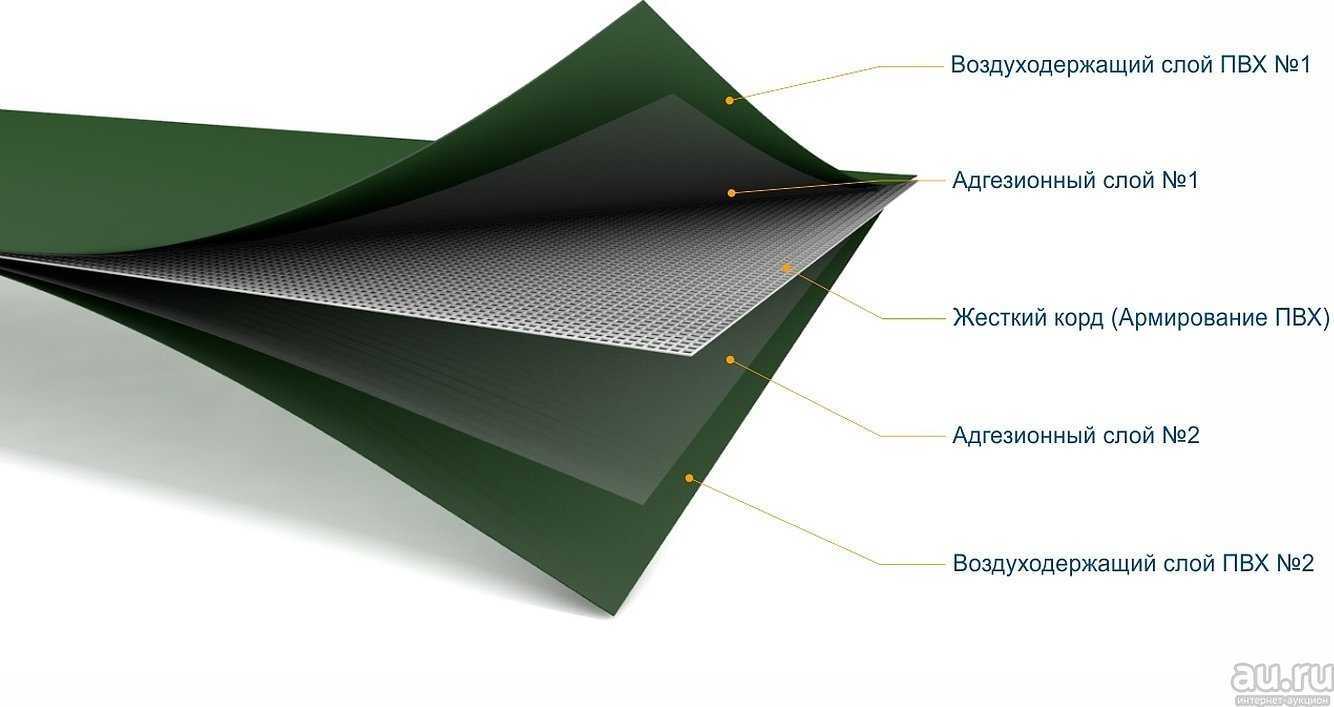 Этот материал имеет многослойную структуру, в основе которой лежит прочный корд (синтетическая полиэфирная материя) покрытый с двух сторон поливинилхлоридом. Благодаря этому он считается идеальным для изготовления лодок, тентов и другой ответственной продукции.