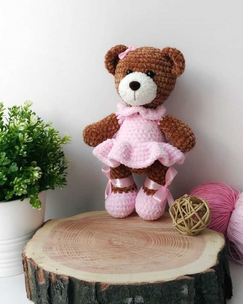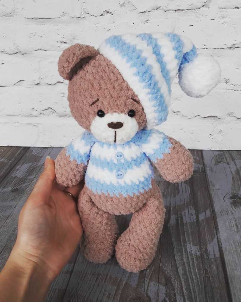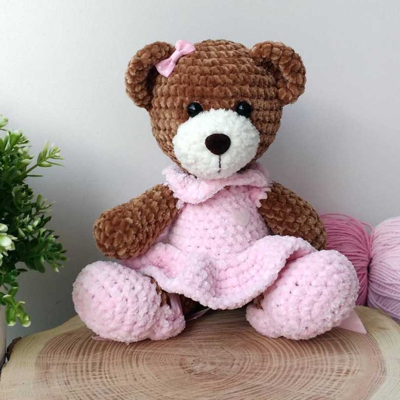 Мишка Тедди из плюшевой пряжи крючком, схема с описанием