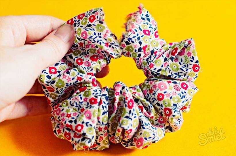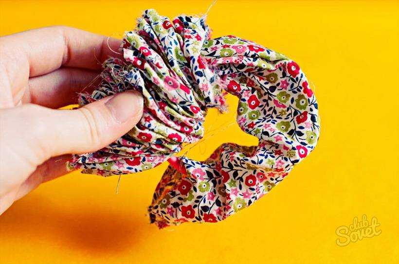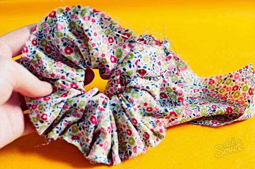 - на резинку завяжите ленту, которая спрячет ее под собой. Получившиеся края ленты, должны быть одинаковой протяженности;