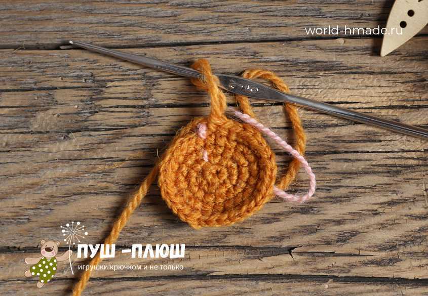 Отдельно вяжется мордочка коровы. Для этого выбираются нитки другого цвета. Отлично подойдёт розовый.